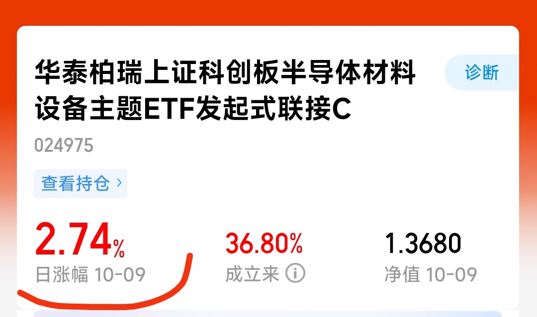 看到$华泰柏瑞上证科创板半导体材料设备主题ETF发起式联接C$今天又涨了2.74