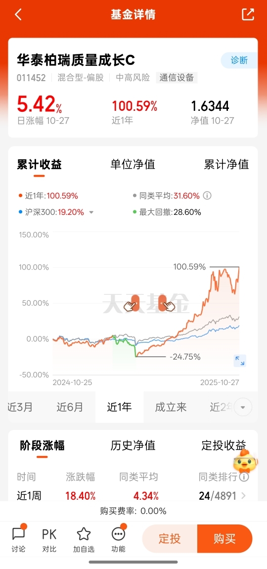 今天CPO行情有点震荡,冲高到前期高点附近就回落了,进入中枢震荡的格局,但整体还是单边上涨的结构,低点在抬高,高点也在创新高,说明大方向没坏。核心还是AI发展带火了算力需求,CPO作为关键技术,龙头公司订单都在涨,长期肯定有戏 。可问题是个股分化厉害,有的纯靠炒作,有的真有业绩,很难分清。这时候华泰柏瑞的产品就靠谱了,它的投资风格就是抓成长股的质量,能帮你筛掉那些虚头巴脑的,聚焦真有价值的标的,C类进出也方便。