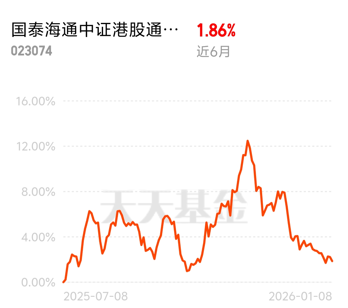 年末资金避险,高股息成 “避风港”。国泰海通中证港股通高股息投资指数发起 (QDII) C 近 6 月 1.86%,对比港股通有 10%-20% 的税优,股息率更高,估值低,能抗市场波动。$国泰海通中证港股通高股息投资指数发起(QDII)C$