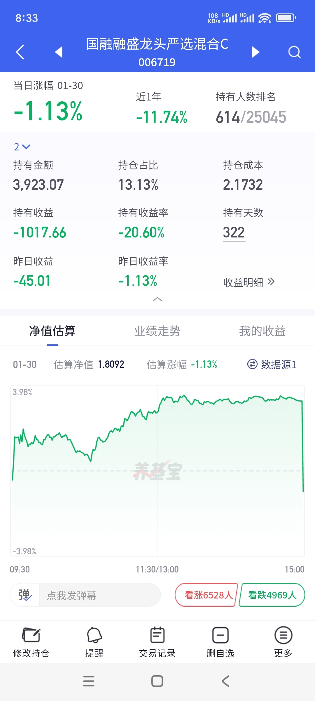 $国融融盛龙头严选混合C(OTCFUND|006719)$ 持有322天,收益-20.6%