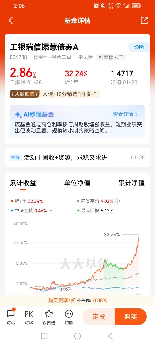 2026年固收+与黄金价值凸显,$工银瑞信添慧债券A$成我的配置必选。