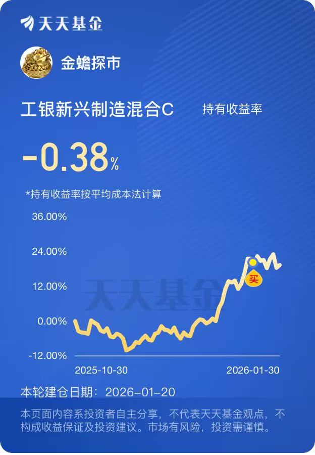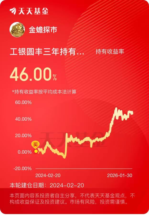 其实作为普通投资者,不用把投资想得多复杂,手里有工银圆丰、新兴制造这类偏权益的基金抓成长,再配点固收 + 稳底盘,小仓位布局黄金等资源品抓弹性,守攻结合就挺好。2026 年的市场,不求赚大钱,只求在控制风险的前提下,让资产稳步增值,这样的配置节奏,心里也更踏实。@工银瑞信基金