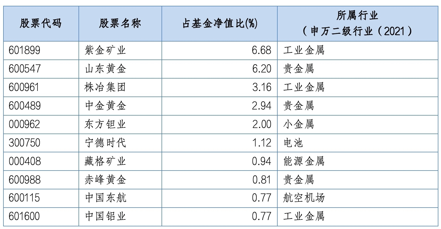 从其前十大重仓股来看,该基金在四季度主要聚焦于以黄金为代表的资源品。紫金矿业、山东黄金、中金黄金等黄金相关个股占据了较大权重,同时还配置了工业金属、小金属、能源金属等资源类品种,以及宁德时代、中国东航等其他行业龙头企业。这种配置策略充分体现了基金经理对市场趋势的敏锐把握,在全球降息周期、美元走弱、地缘风险上升的背景下,资源品的战略价值与经济价值迎来共振,黄金等贵金属更是成为了避险保值的首选资产。