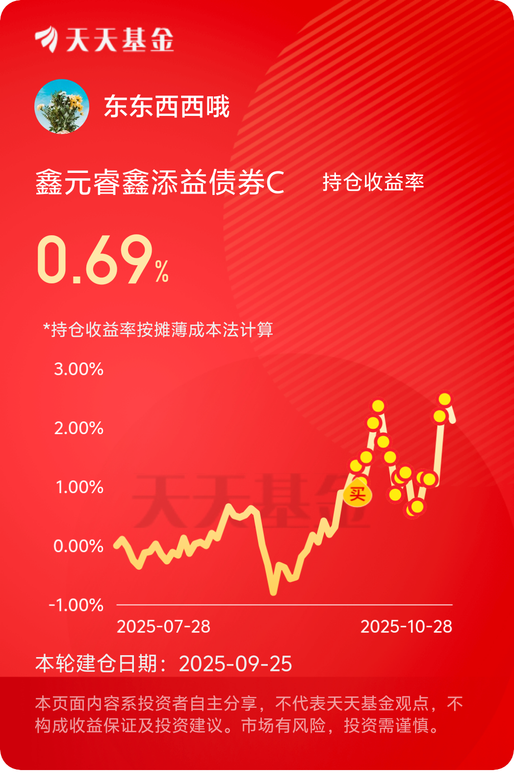 逢跌就加仓呗,对这支债基真的有信心,长期拿着没问题$鑫元睿鑫添益债券C$ #晒收益#
