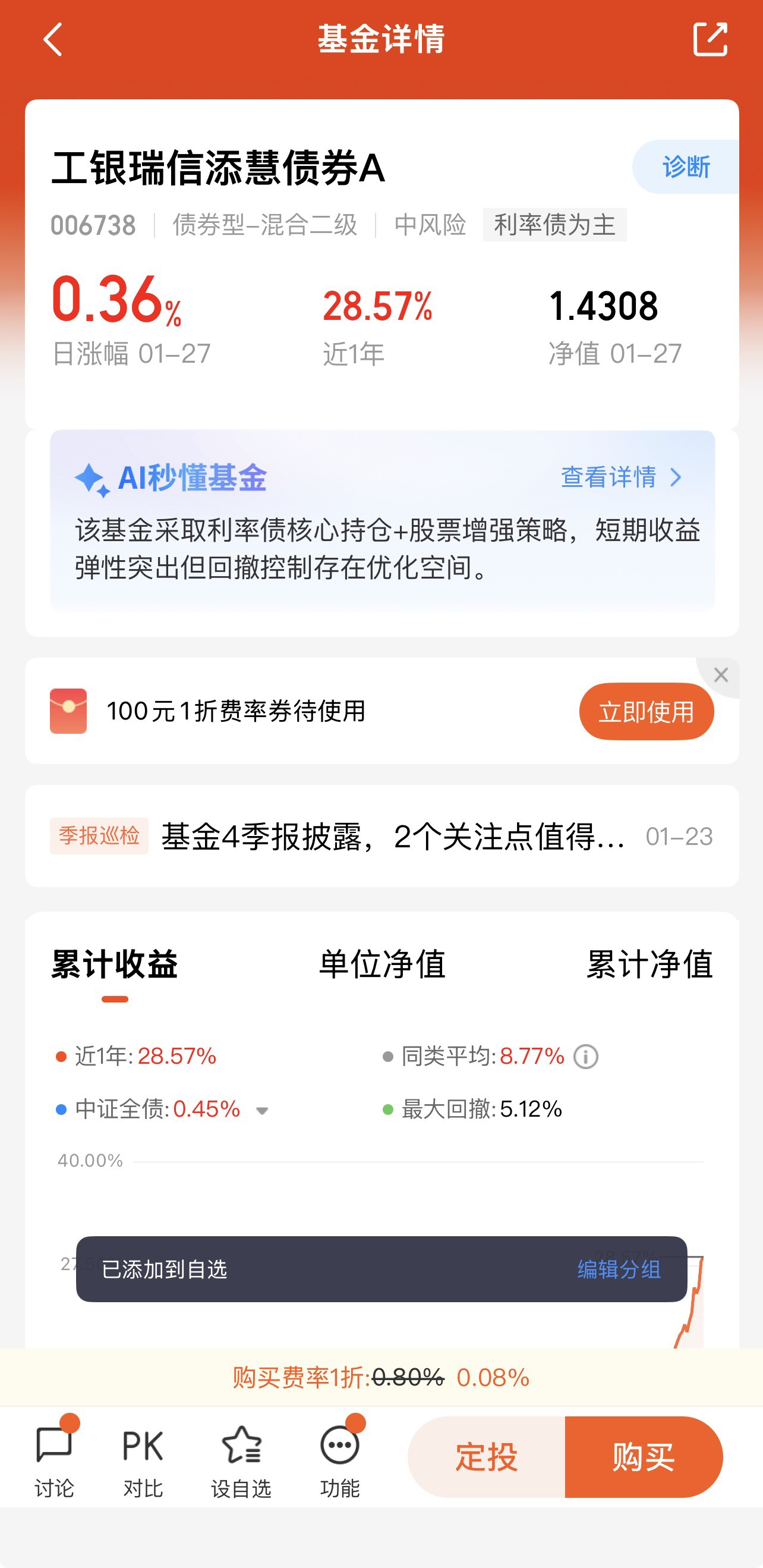 骑牛看熊看好工银瑞信添慧债券C(006739),投资分析如下: