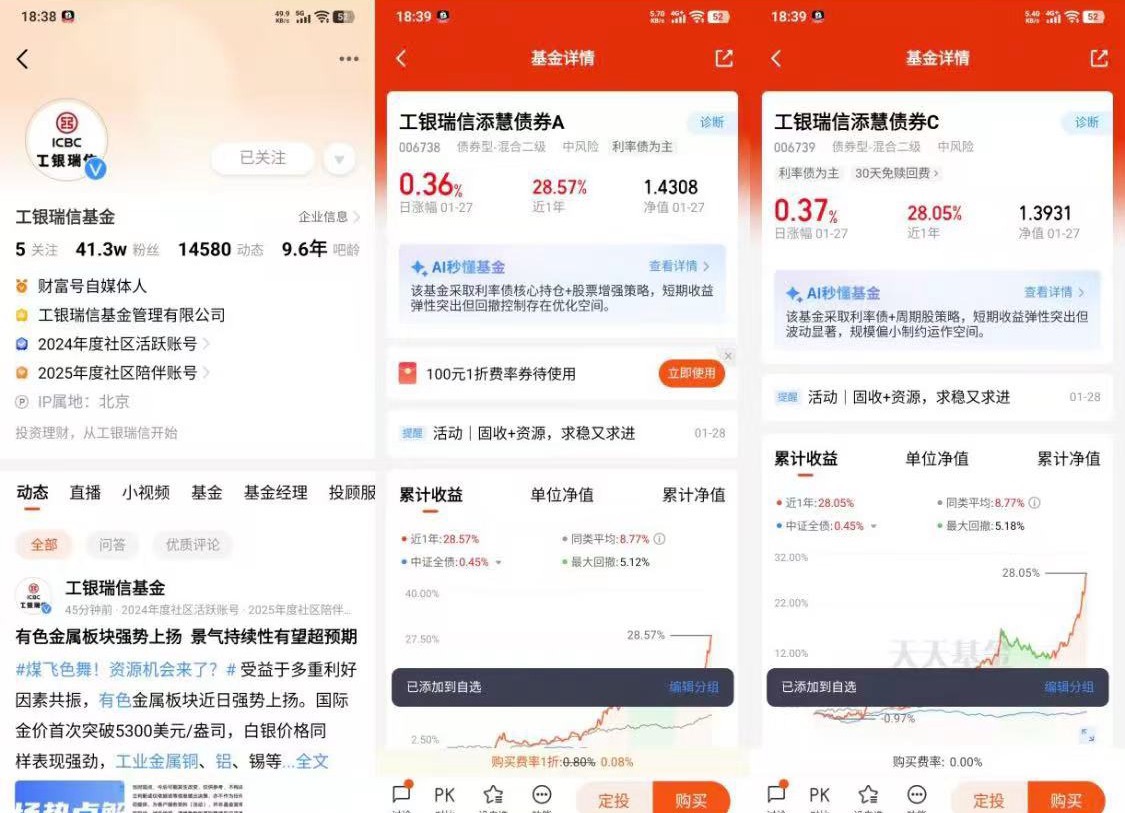 2026年全球降息周期开启、美元走弱、地缘风险犹存,资源品的战略价值与经济价值共振,黄金价格屡创新高,#固收+资源#成为资产配置的最优解之一。工银瑞信添慧债券C(006739)深度契合这一趋势,以“固收为盾、资源为矛”,在同类产品中脱颖而出。