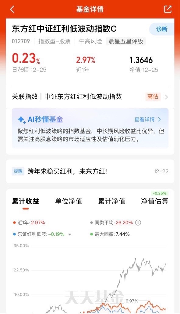市场行情不佳的时候,东方红红利低波反而更稳,它在回调中韧性十足,净值还能保持增长