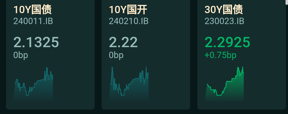 十年期国债收益率:2.1325%,-0BP(国债收益率越跌,债市越涨)