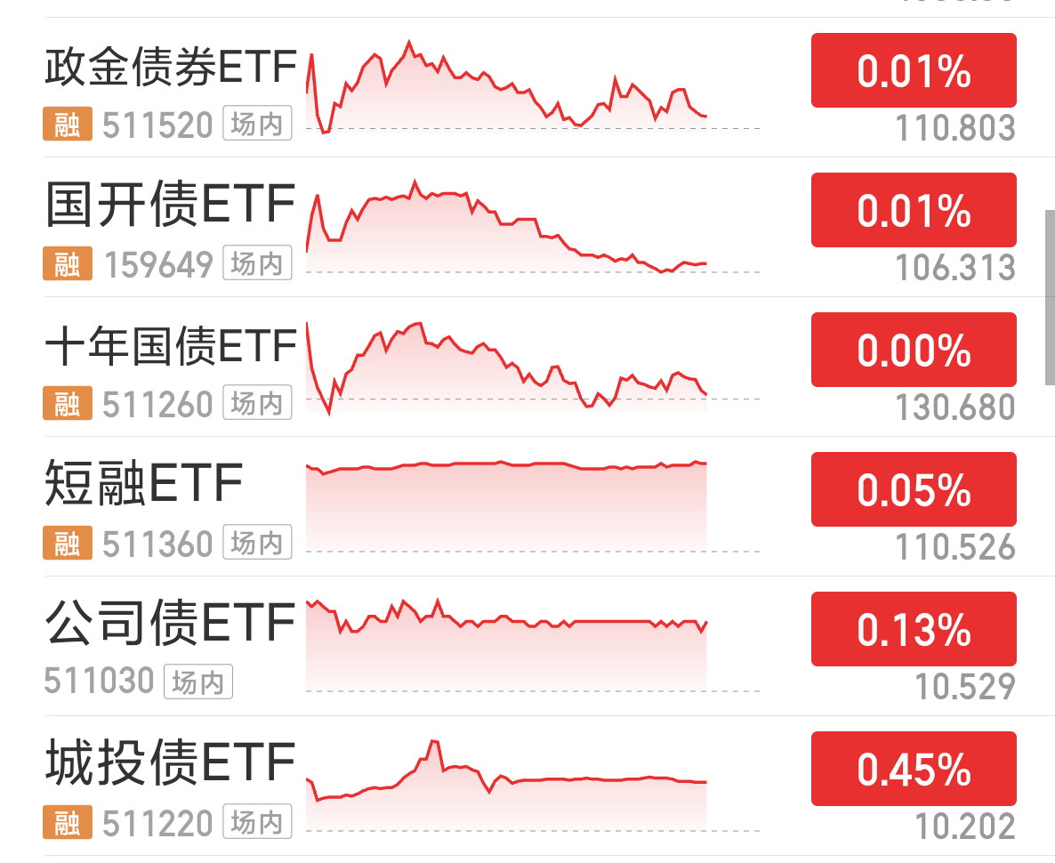 利率债:政金债券ETF、国开债ETF、十年国债ETF