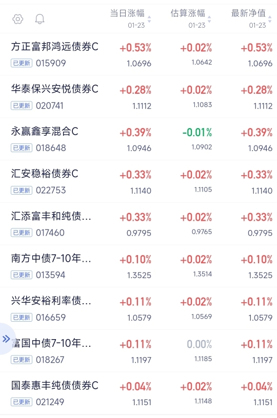 利率债继续收蛋,$方正富邦鸿远债券C$给了53个,最近靠“利率债+策略”组合,快