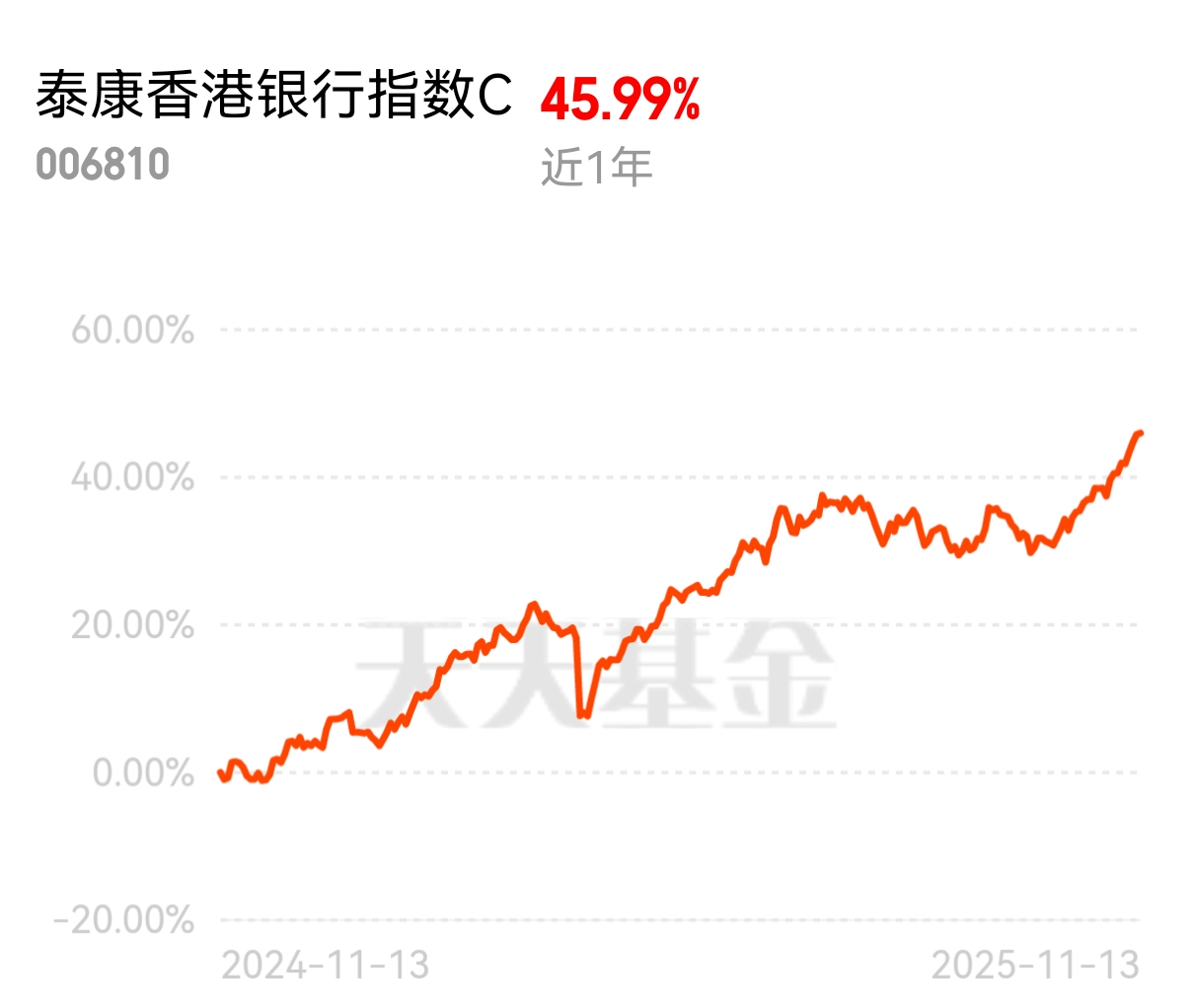 昨天大涨今日震荡,再次行情下准备布局泰康港股通中证香港银行C(006810)作为聚焦香港银行板块的指数基金,近期行情与长期业绩均展现稳健特质。近一年涨幅45.99%,近三年涨幅99.35%,依托中证香港银行指数的优质标的,持仓涵盖建行、汇丰控股等龙头银行,分散风险的同时捕捉行业红利。当前香港银行板块估值偏低相较国内存款具备收益优势。