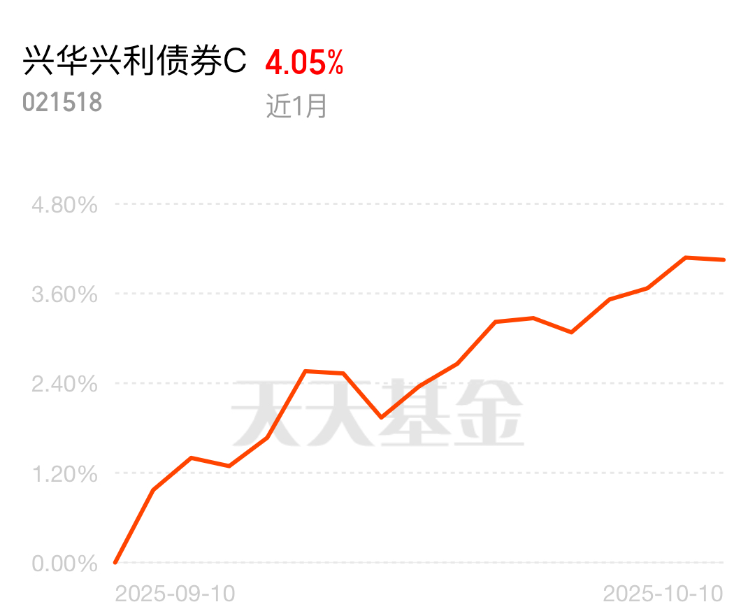 新手想在温和环境中体验市场波动,积累经验,兴华兴利债券基金的固收 + 属性很契合。它波动小于股票型基金,近一月收蛋 405 个,持有七天免赎回费,降低投资压力。$兴华兴利债券C$