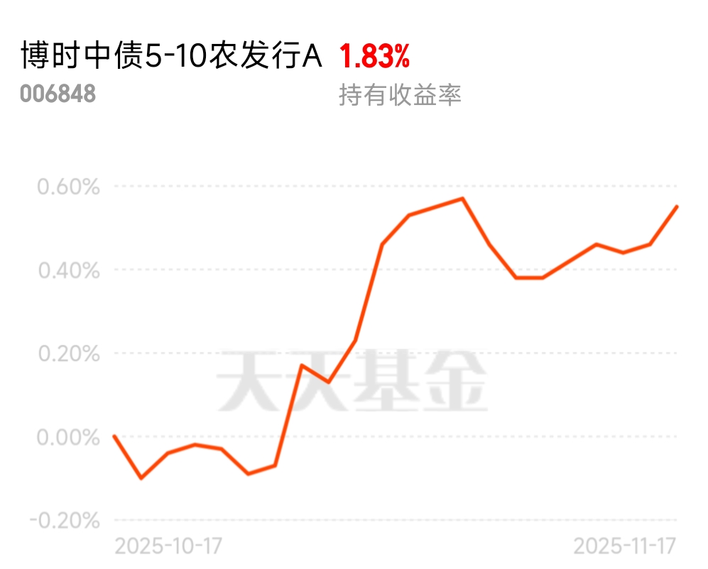 以过往经验看,跨年行情对债市有利。这只指数基弹性大,说不定能在年底这波有所表现。$博时中债5-10农发行A$