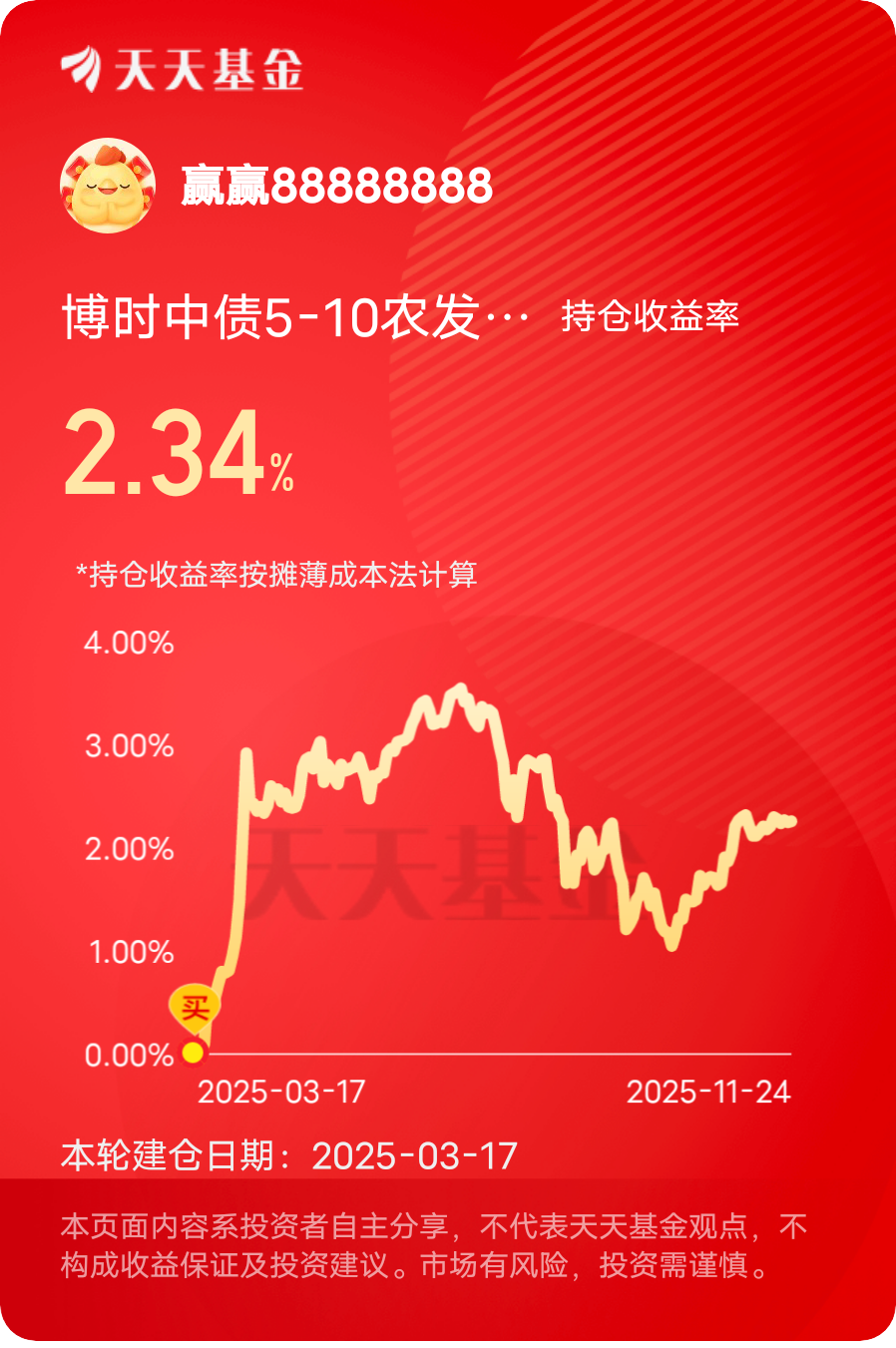 央行万亿MLF操作给市场吃了定心丸。5-10年久期合适,期待后续有不错的表现~#晒收益#