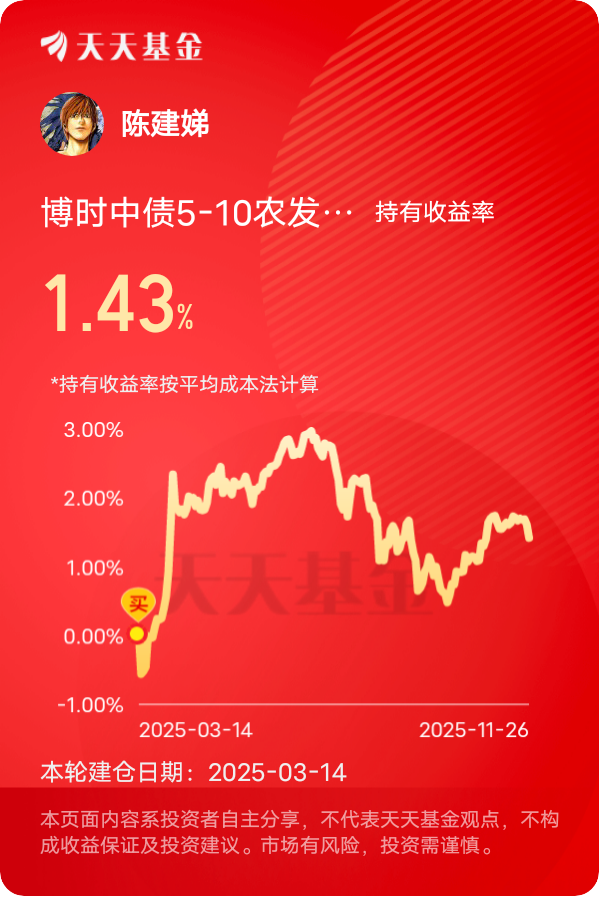 这只工具化属性强,紧密跟踪指数。现在十年期国债利率位置,感觉向下空间比向上大,值得赌一把。#晒收益#