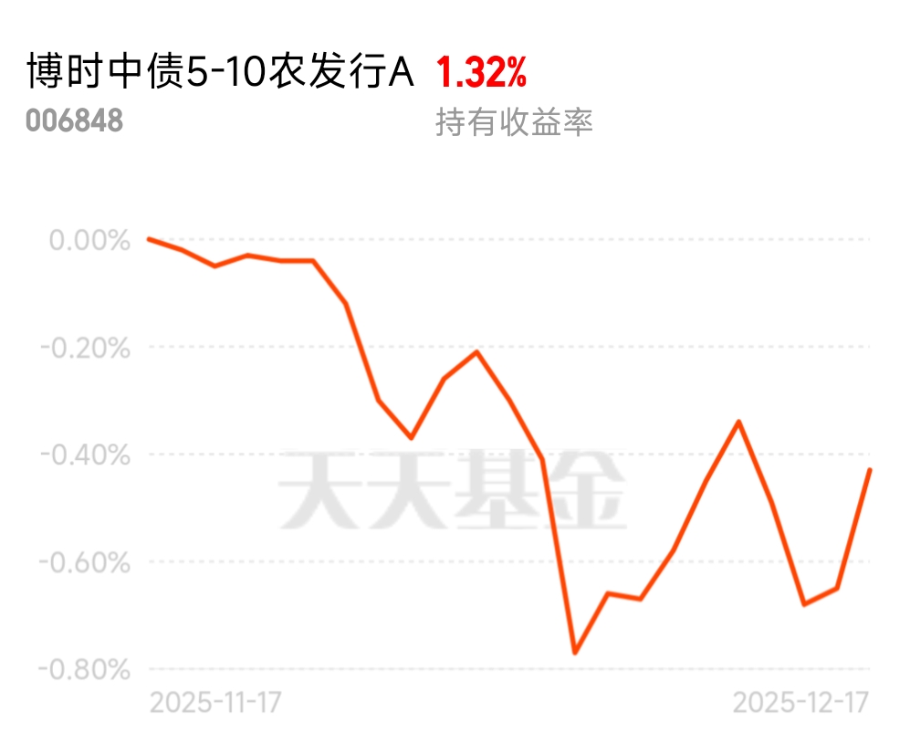 货币政策保持宽松,市场利率中心下移,对中长债很有利。昨天账户添了20多个新鲜蛋,看好后续表现$博时中债5-10农发行A$