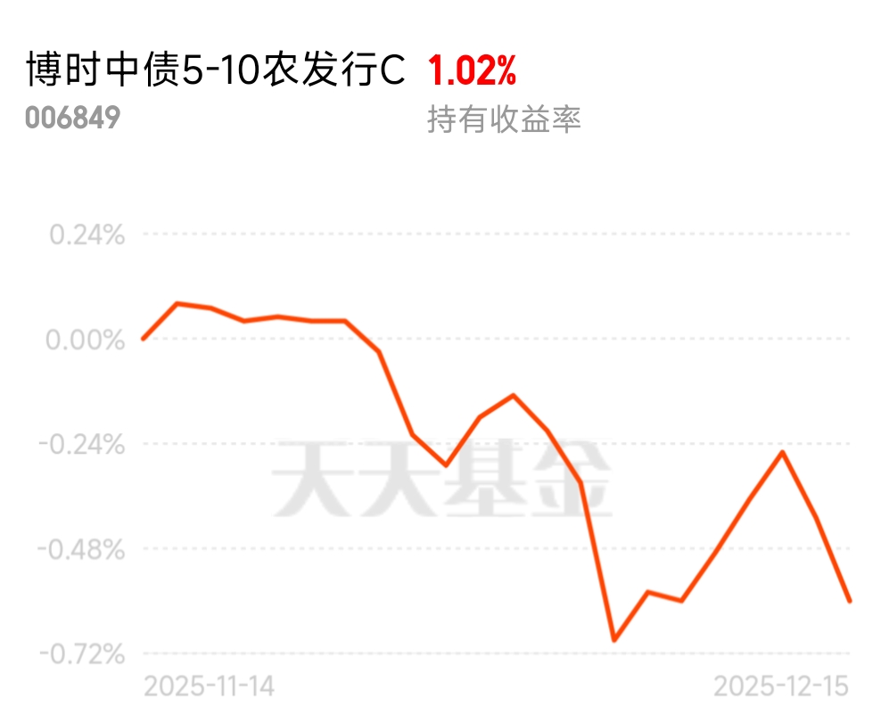 农发债久期长,反弹起来力度大。看好利率下行,回调就加点,摊一下成本$博时中债5-10农发行C$