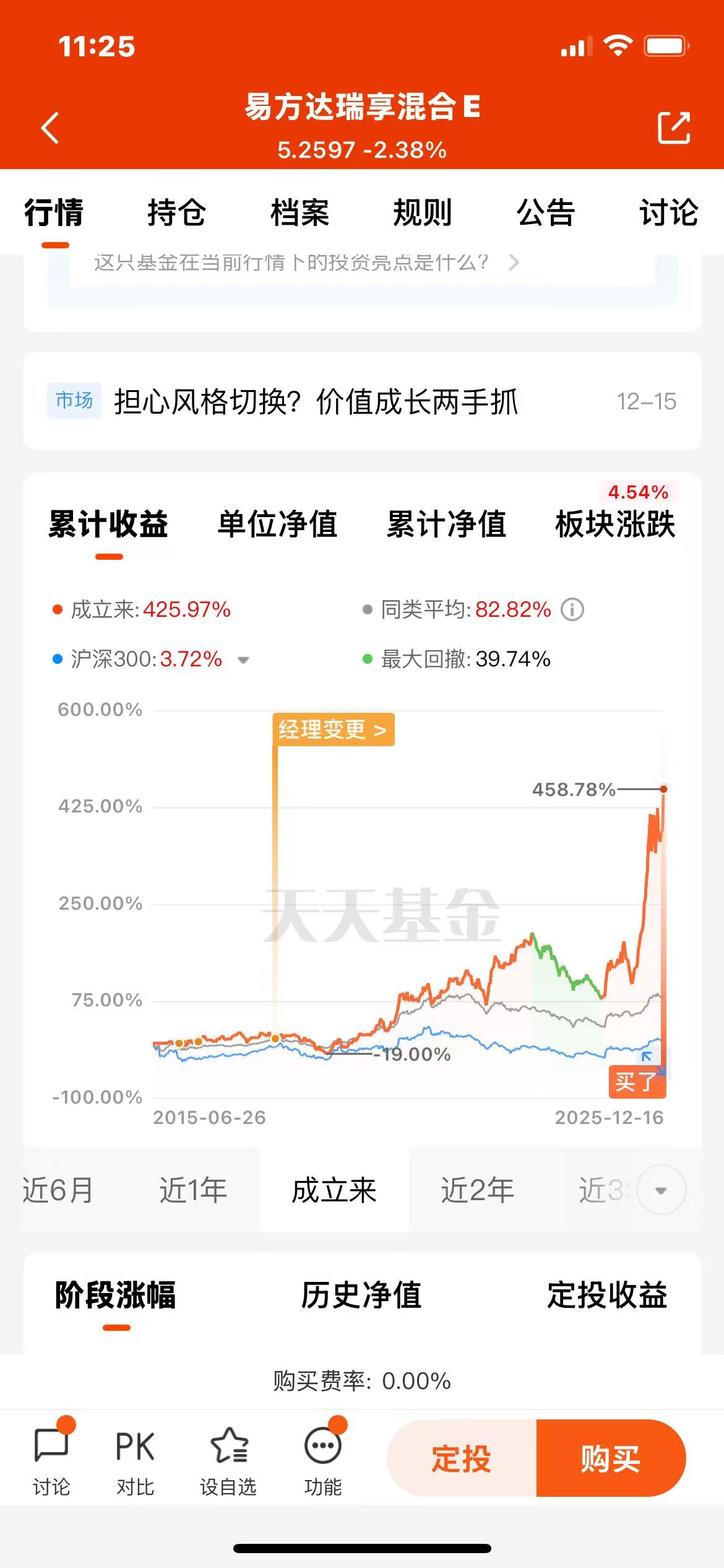 所以说机会来的时候要勇敢上车!看我也是买到神基了!$易方达瑞享混合E(OTCFUND|001438)$周一上的车,虽然昨天回调,但今天一口气涨回来,还有赚的!真的是神基啊,从估值也能看出来,这支基金又是领先跑赢同类!