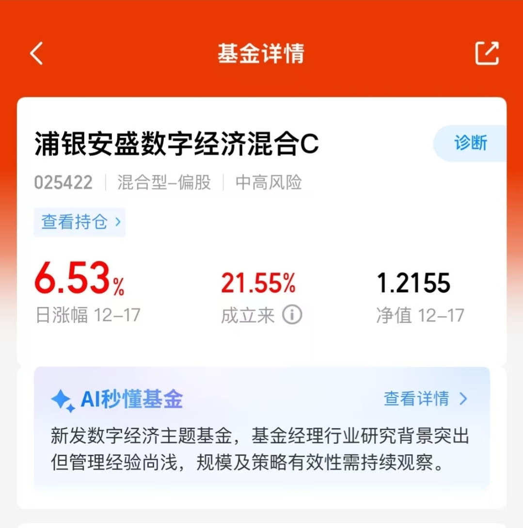 #锂价狂飙!能源金属归来?# $浦银安盛数字经济C$:今天单日大涨+6.53%