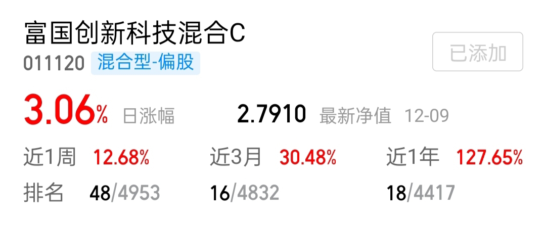 今天科技来了大回调,普遍都是绿的,长期看不错$富国创新科技混合C$三月收益超过三