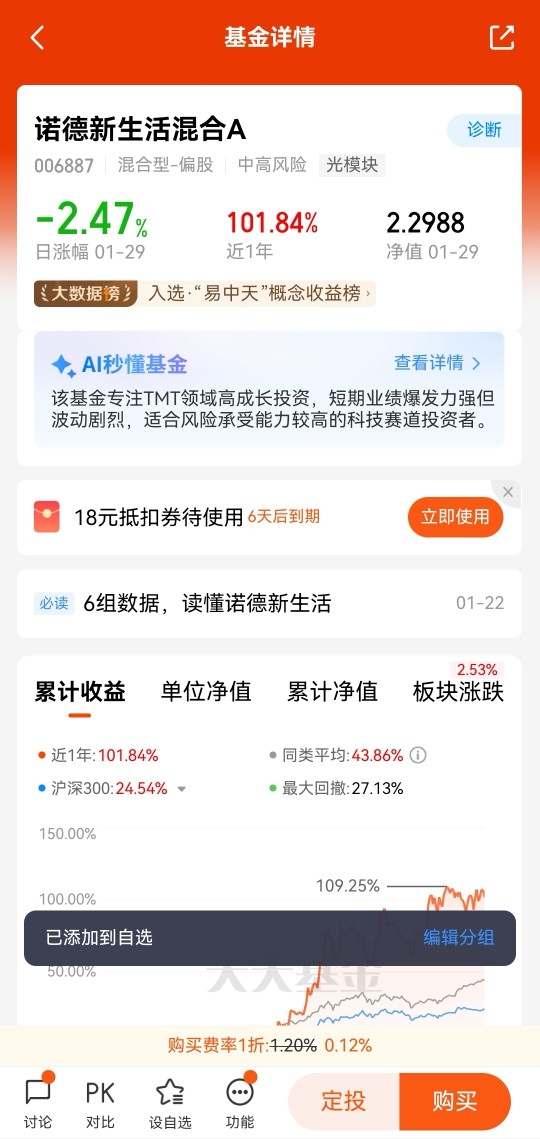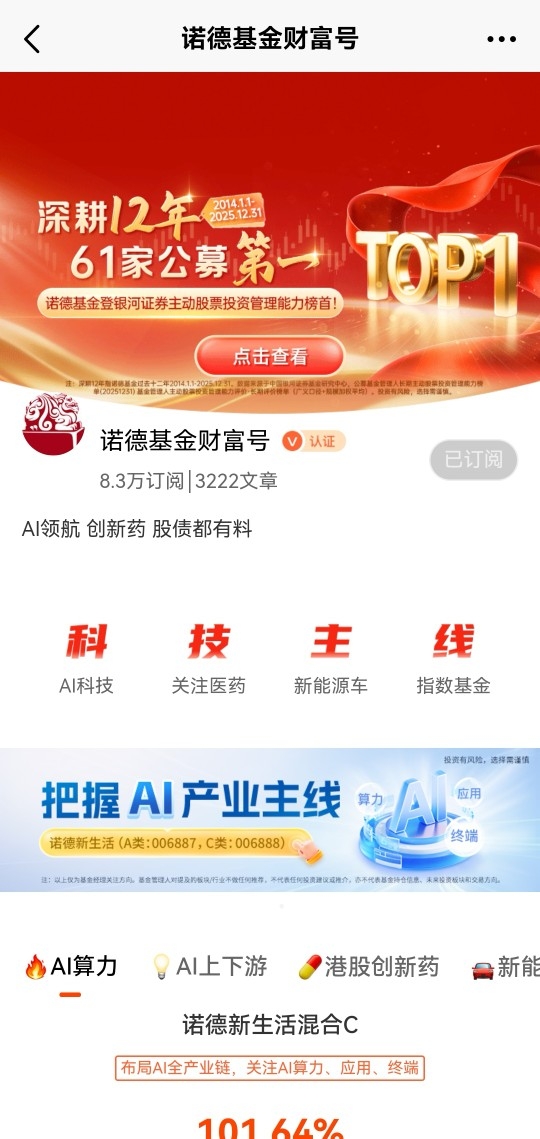 $诺德新生活混合C$ $诺德新生活混合A$ 专注AI赛道布局,动态调整投资策略,精选AI产业链的优质个股,持续关注AI算力板块,在AI产业全力发展之际,拥有提前量优势,而持仓股的新易盛、中际旭创、天孚通信等“老登”算力个股具有行业指引意义,能够长期收益于AI产业发展红利,同样是新年投资中值得关注的AI赛道投资主力军。@诺德基金