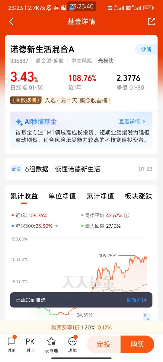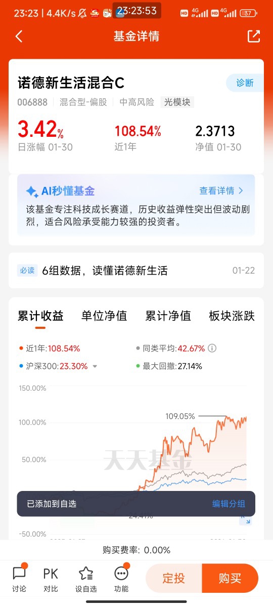 回顾我的持仓经历,从2025年下半年买入诺德新生活混合C至今,我深刻体会到“选对基金+长期持有”的重要性。2025年三季度,AI板块曾因算力芯片短缺出现一波回调,身边不少朋友纷纷赎回AI主题基金,但我研究后发现,基金持仓的不少企业正是国产算力替代和应用落地的核心标的,短期波动并未改变其长期成长逻辑。于是我不仅没有赎回,反而在回调时分批加仓,最终通过基金经理的专业调仓和行业的复苏,收获了不错的收益。