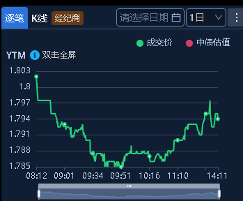 十年期国债收益率:1.794%,-0.85BP(国债收益率越跌,债市越涨)