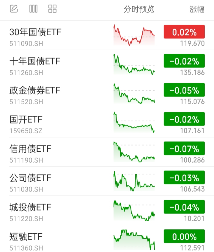 信用债ETF、公司债ETF、城投债ETF,代表信用债基。全部下跌