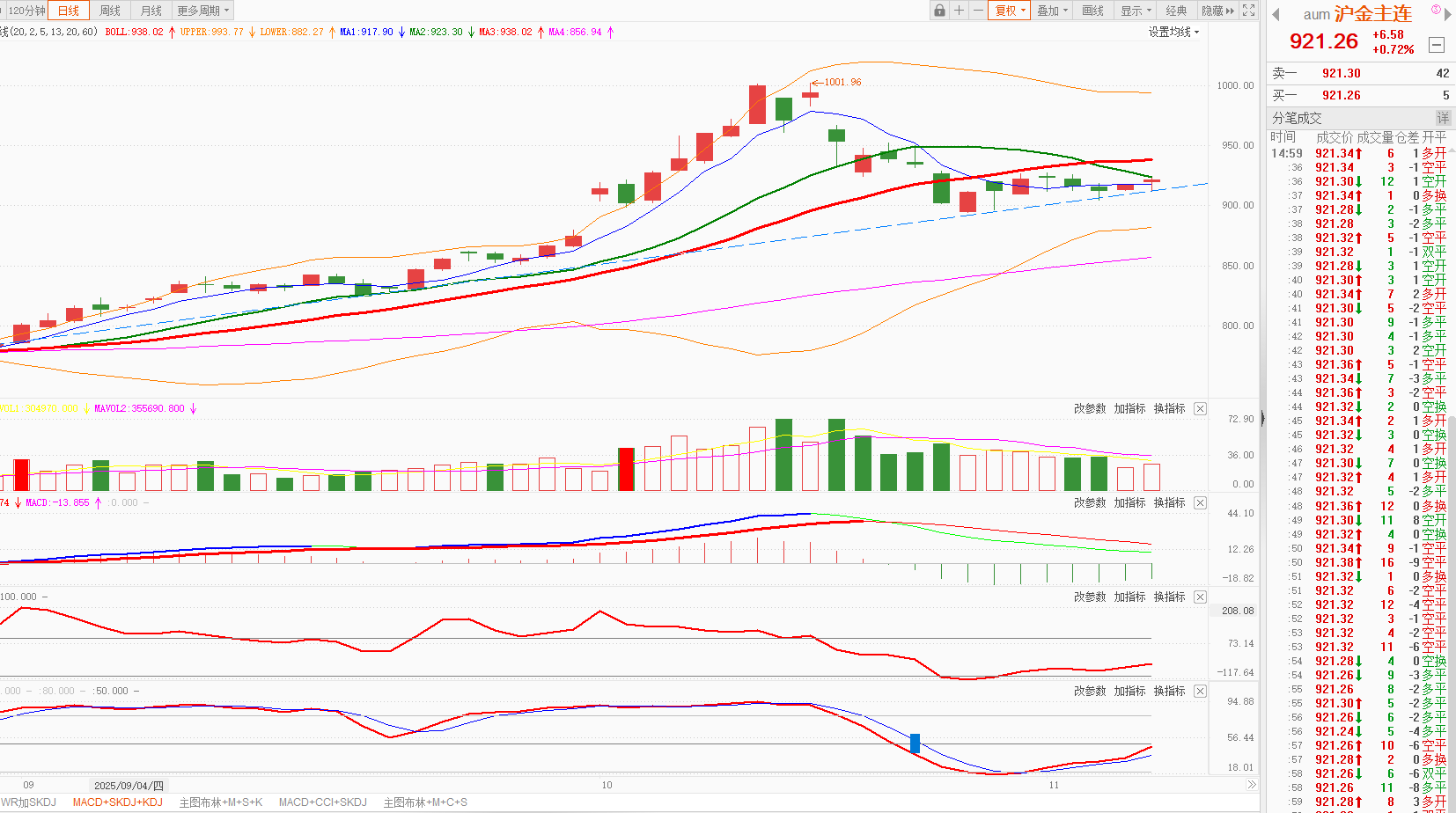 沪金主连:涨0.72%,日K线在5日均线之上。今天沪金上涨,目前仍处于小幅横盘震荡状态,没有明显的向上或向下趋势,后市在没有大的消息刺激的情况下可能继续震荡。可持基观望,静待方向选择或适量高抛低吸。