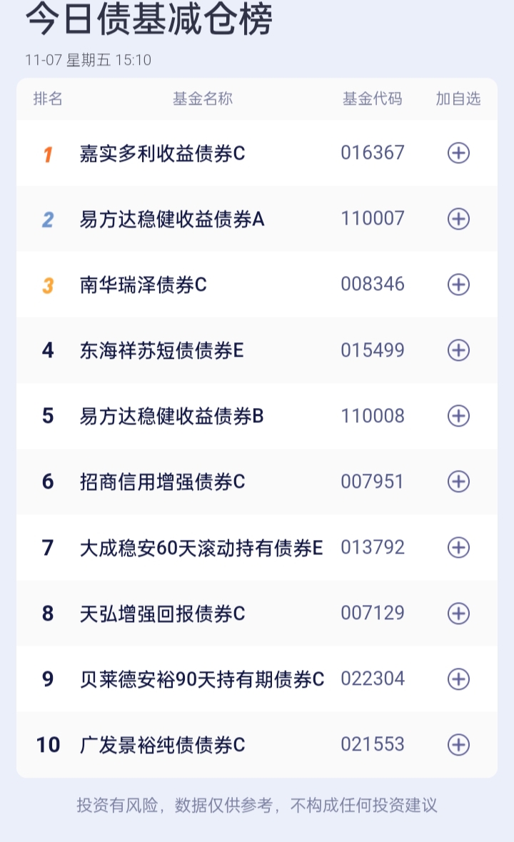 八、债券基金加、减仓榜(截止到15:00收盘)