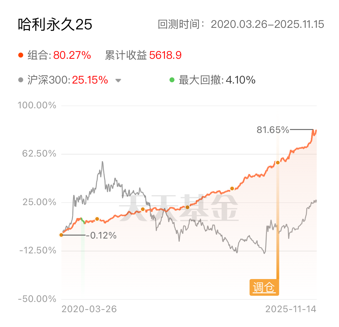 这也是各种哈利永久25指数组合的回测验证经历的最大回撤幅度-10%左右的数学规律和真实可能性。当然选择低波的股票基金则组合总体波动回撤也会小些。比如潇哥哈利永久25S指数组合回测验证期间最大回撤-4.1%、哈利永久25O指数组合回测验证期间最大回撤-7.68%。