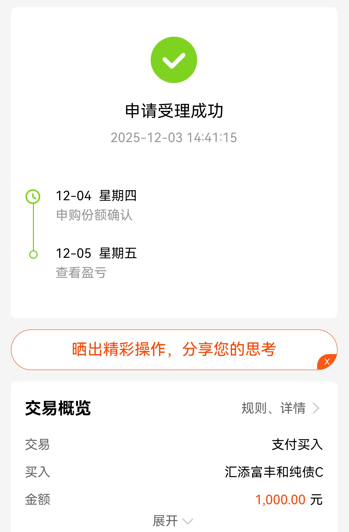 这时候我选择加1000$汇添富丰和纯债C(OTCFUND|017460)$,30CM大长腿债基,对标30年超长利率债,债市前期回调可不少,年底债基大概率都是上涨的,安全边际增高了,这时候抄底超长债挺好的,可以搏一波反弹,反正是持有7天以上没有手续费,操作起来也是很方便的,闲钱先放这边了,把握年末债的这一波行情。