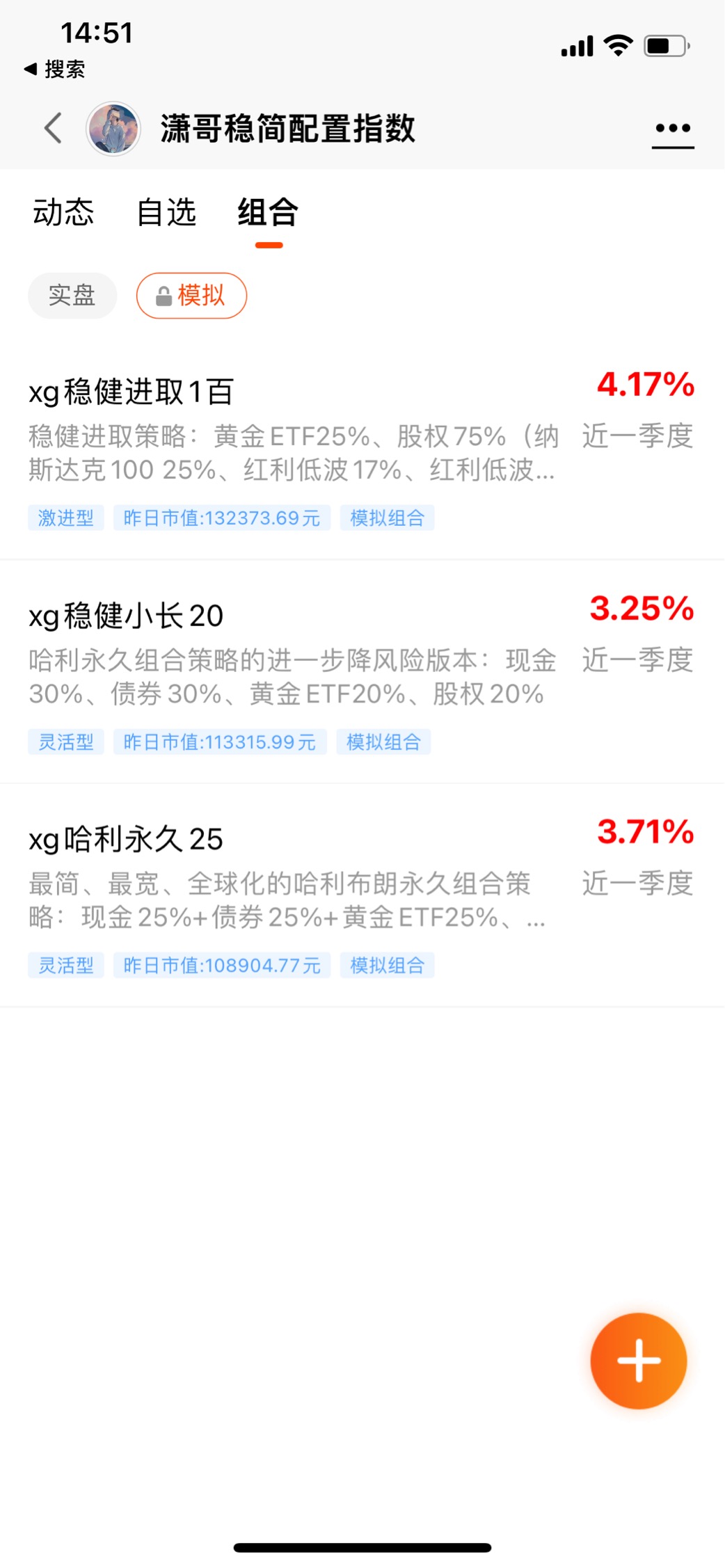 3个模拟组合对应潇哥3个稳健配置组合策略;