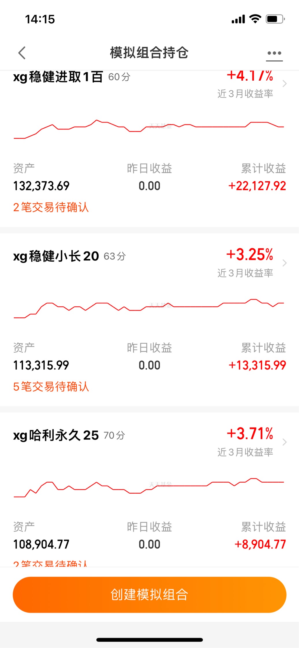 成立以来3个模拟组合收益也还不错;有2只满1年以上年化10%以上了;