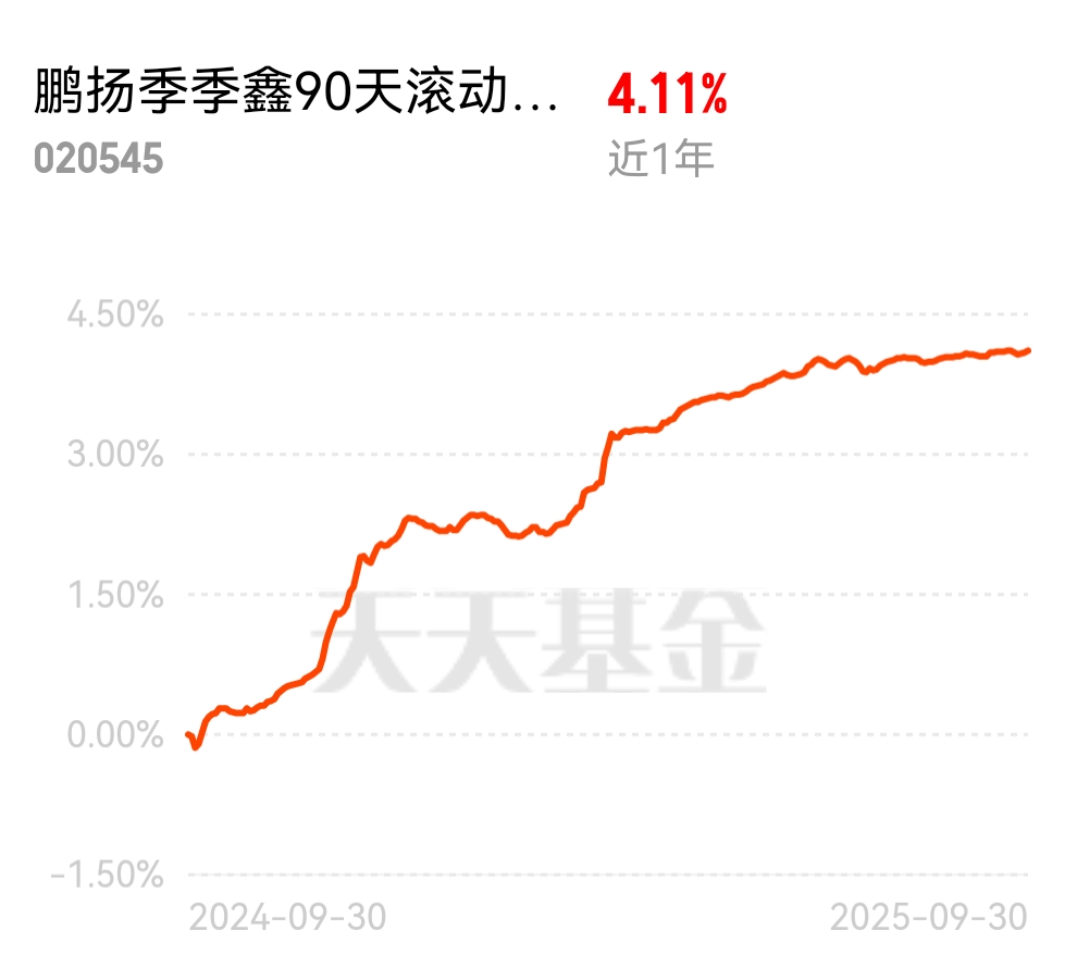 股市行情虽好,但也要注意资金分散投资,我$鹏扬季季鑫90天滚动持有债券A$表现很