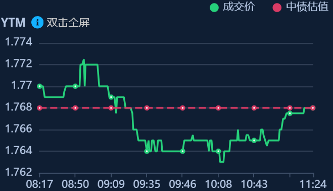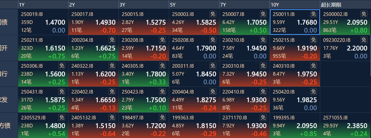 二、十年期国债收益率:1.768 0.0%(国债收益率越涨,债市越跌,两者反向关系)