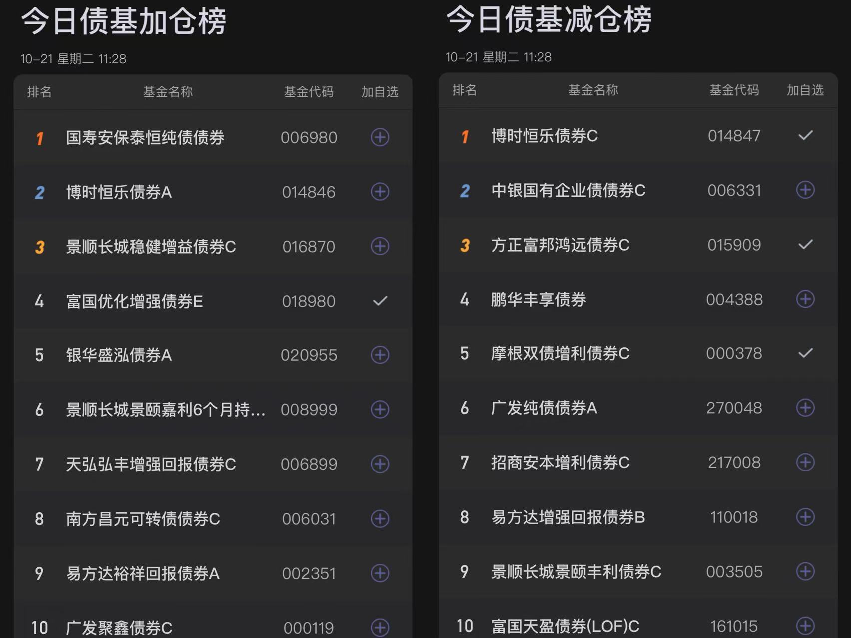 五、今日债基榜单: