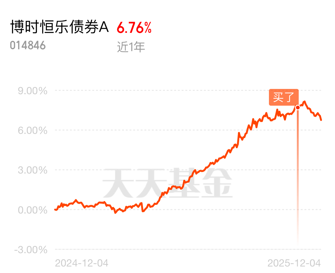 求稳又不想错过行情,低波固收+是答案!$博时恒乐债券A$ 债基打底,股票增强,近半年4.48%的回报,长期拿着心里有底。最近还把申购上限卡在100万,这操作挺良心,就是为了不让钱一下子涌进来摊薄老持有人的收益,这波必须点赞!央行12月5日开展的1万亿元3个月期买断式逆回购操作,对博时恒乐来说绝对是重磅利好,它80%以上的仓位都集中在高等级信用债和利率债,其中光国开行政策性金融债就占了22%左右,还有中建、中铁这类央企发行的信用债,违约风险几乎可以忽略不计。这次万亿逆回购本质是向市场注入中期流动性,直接压低了中短端利率,而这基的债券组合平均久期在3.5年左右,正好能吃到这波利率下行的红利,不仅票息收益稳稳在手,持有的中长期利率债还能赚资本利得,双重收益叠加。更让我惊喜的是它的权益仓,三季度就把周期股换成了消费电子和 AI 应用方向的龙头,正好踩中了四季度科技板块的反弹行情。20%左右的权益仓位比例控制得特别好,既不会因为股市波动拖累整体净值,又能在行情来的时候吃到肉。现在市场都在说股市3800点附近有不少结构性机会,债市又有央行政策持续托底,昨天的调整反而给了逢低布局的好机会。#摩尔线程开盘价650元!一签赚超26.7万#