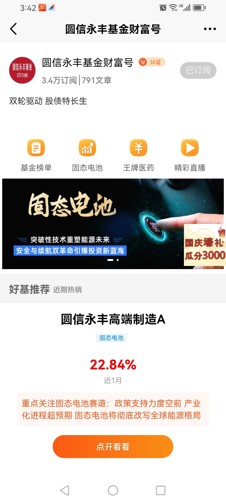 国庆期间的见闻让我深刻认识到,高端制造不仅是产业升级的引擎,更是资本市场的“星辰大海”。圆信永丰高端制造A凭借精准的赛道选择和稳健的业绩表现,成为分享这一红利的优质工具。未来,随着“中国智造”走向全球,该基金有望持续为投资者创造超额收益。@圆信永丰基金