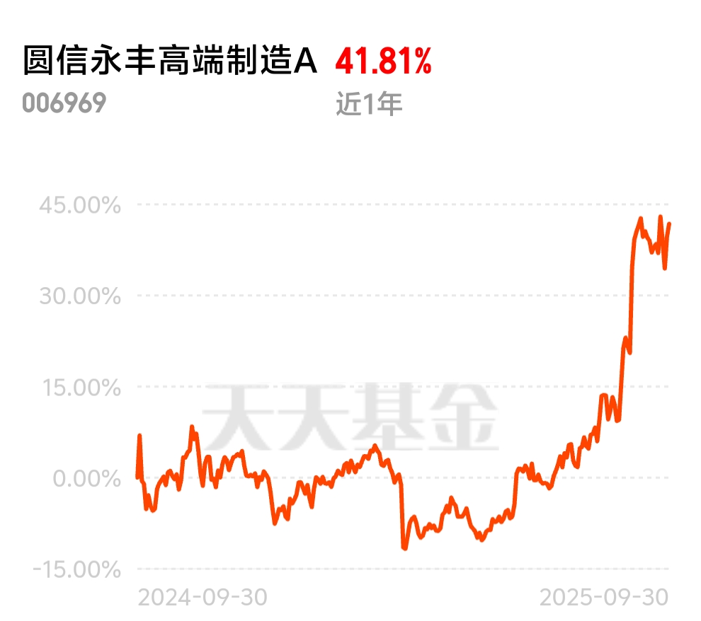 $圆信永丰高端制造A$ 基金精准捕捉了这一产业机遇。基金经理党伟采用自下而上选股策略,持仓高度聚焦固态电池产业链的设备与材料核心环节,前十大重仓股占比35%-48%,既保持分散性又强化赛道集中度。业绩表现印证了布局的前瞻性:近一年收益率64.07%,今年以来涨幅44.95%,远超同类平均水平,成立以来年化收益率达15.76%。