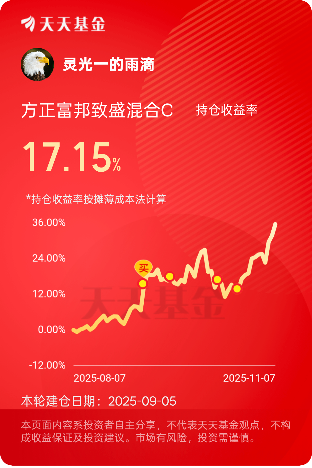 电池板块近期走强的直接原因,是AI繁荣带来的用电荒。尤其是数据中心建设受到电力短缺制约,海外对储能的需求激增。而电池作为储能系统的核心单元,需求也同步增长。国内头部储能企业、电池企业海外订单不断、持续满产,打开了第二增长曲线。方正富邦致盛近两周14%,8连阳之后又有一个3连阳,真是一只电池宝藏基。$方正富邦致盛混合C$ #晒收益#