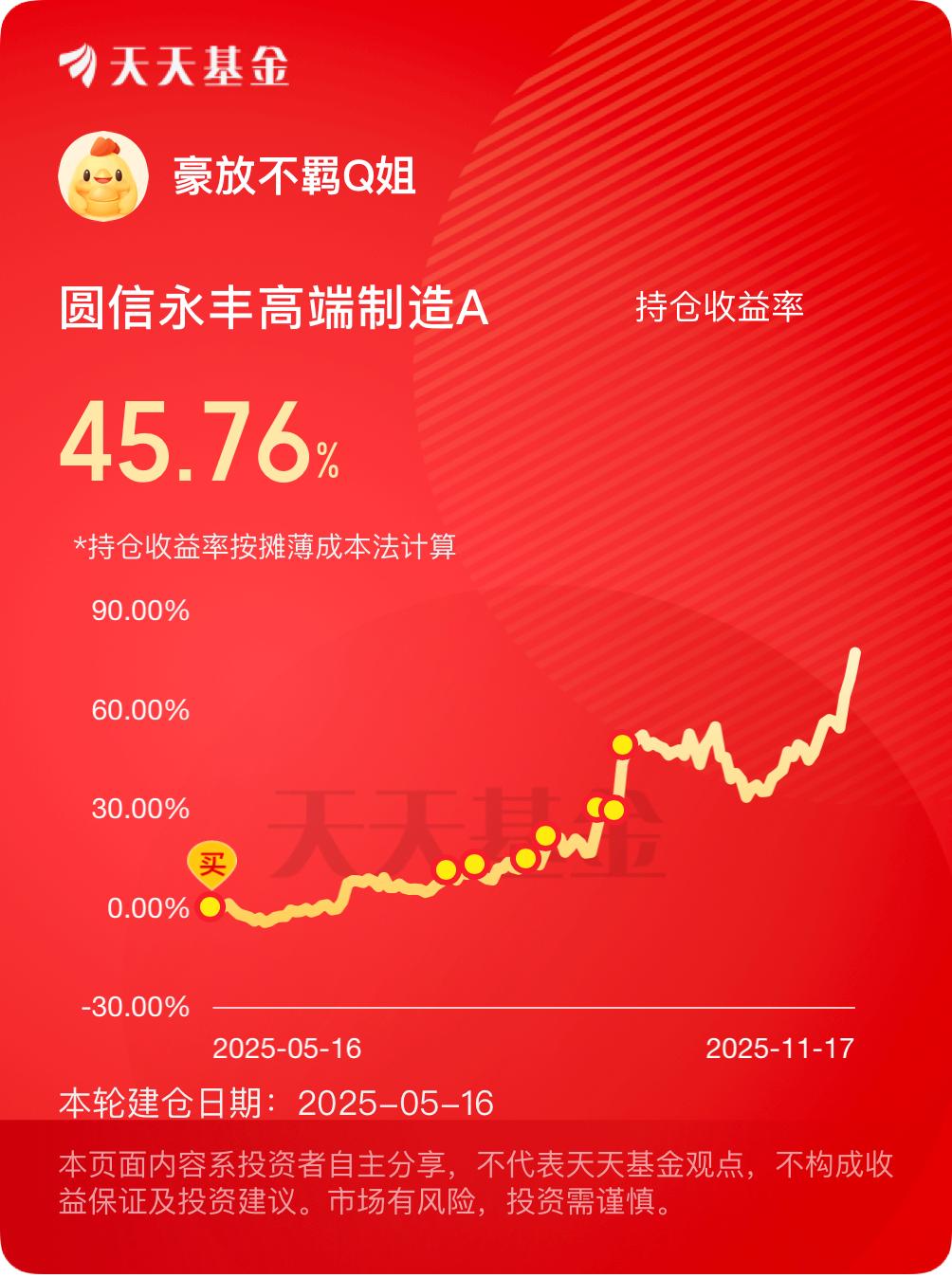 吃大肉哈哈,感谢圆信永丰高端制造基金经理