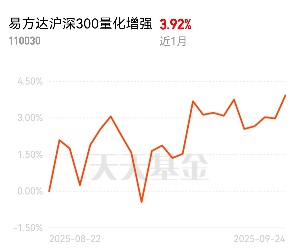 今年行业轮动加速,不敢乱追热点,易方达沪深300量化增强很适配。近1年38.79