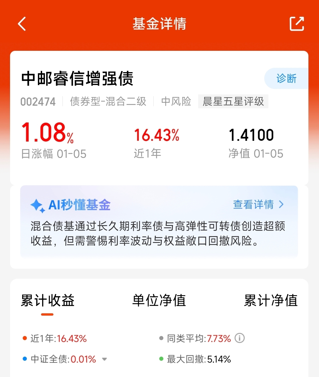 主投可转债和信用债和股票的$中邮睿信增强债$,昨天收获了108个蛋,还会继续收获