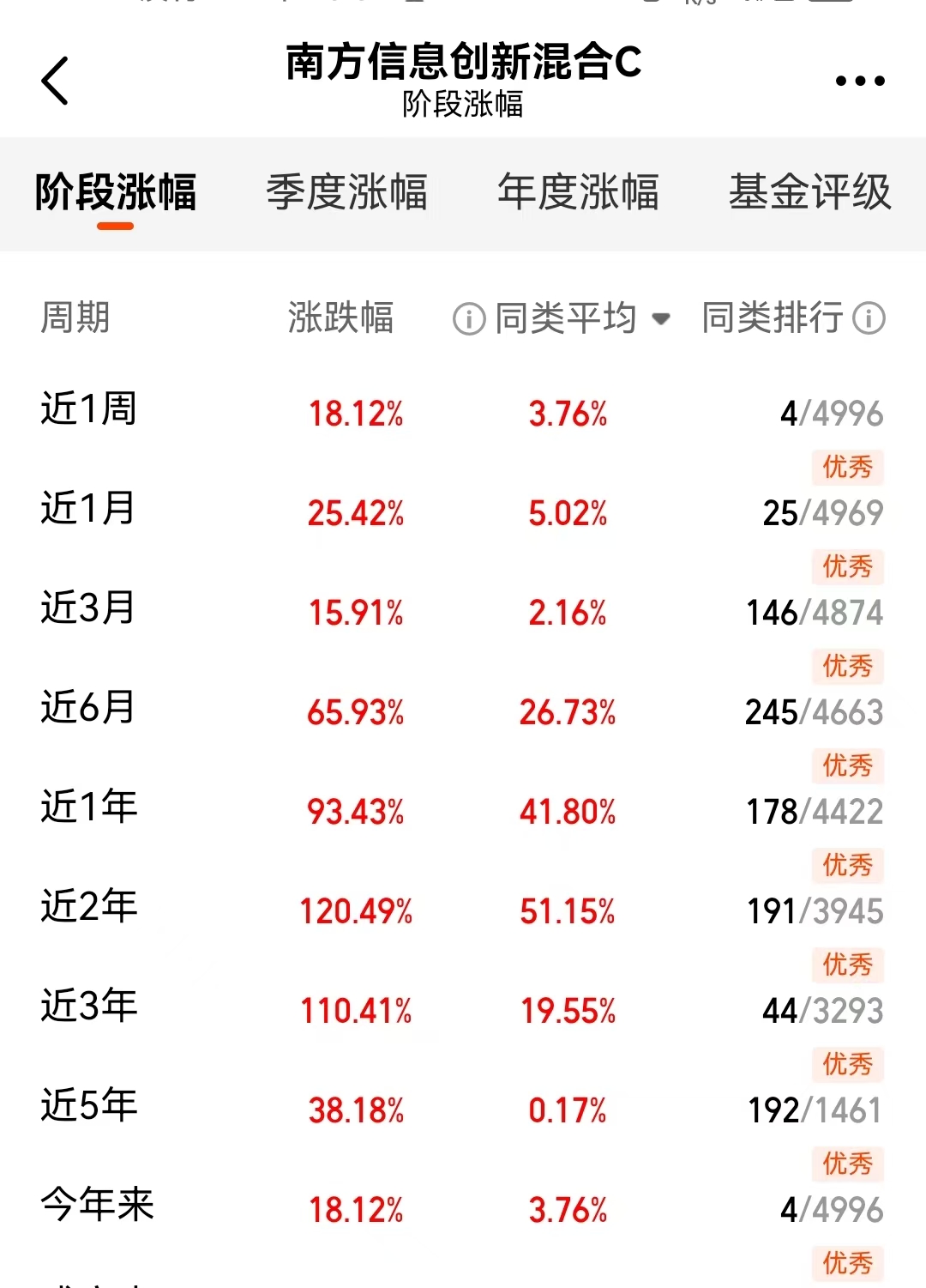 老铁们,行情不错的时候,手上得有点能冲的东西。像这个$南方信息创新混合A$(007490),就是个例子,最近一周表现很可以,涨了18%。拉长时间看,近半年超过了65%,近一年更是干到了93%以上。我今天没忍住,也跟了一点。为啥选它?它重点就在半导体那块。现在这领域有个内在的发展逻辑,行业本身也处于变化的节点,预期未来一段时间的盈利情况会比较乐观。现在这位置,我感觉还不算晚,关注度是有了,机会别轻易放过。#商业航天持续火爆:2026或迎火箭发射大年#