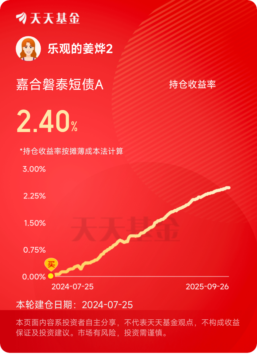 这让我想到了嘉合磐泰短债A。它主要投资于短期债券,风险较低,流动性好。即使是假期,它也能持续产生票息收益。