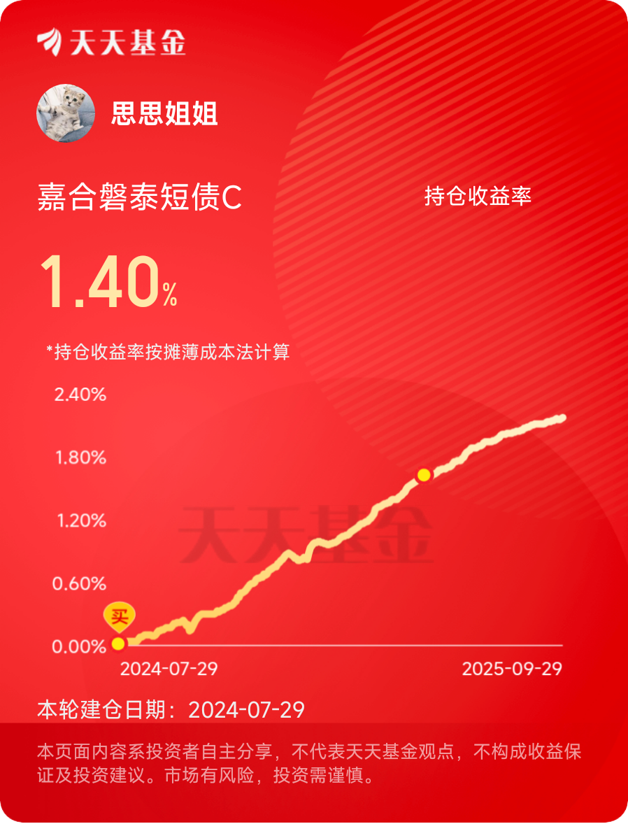 #稳健理财假期不打烊# 假期持仓,图的就是省心稳当,嘉合磐泰短债C刚好踩中需求点。