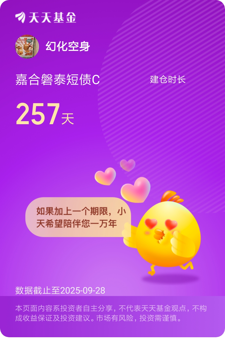 #分享国庆见闻,晒收益,瓜分好礼!# 9月份发布公募费用新规意见征求稿,说要大幅提高公募基金短期赎回费。这个意见征求工作到十月初就要结束了。因为这个新规,我几乎整整一个月睡不好觉、食不甘味。我并不喜欢频繁交易,频繁申赎基金,但有时我确实需要现金,就会把短债类基金赎回一部分。如果以后短债基金将收取0.5%乃至1%的短期赎回费,我可能就没什么兴趣投资短债基金了。债券基金收益本来就不太高,短债类产品能达到2%的年化收益率就算不错了。要是因为持有不足6个月,被收取0.5%的赎回费,相当于四分之一收益就没了。原本持有的短债类产品,我应该会继续持有下去。但以后要申购债券基金时,我可能要犹豫再三了,可能会转而去购买不收取短期赎回费的货币基金或同业存单基金了。假定短债基金有2%年化收益,扣除掉0.5%赎回费,实际的收益率跟货币基金、同业存单也差不多了。我希望赎回费新规不要这么苛刻,希望这个条件能够放宽些,我也希望嘉合基金能为债券基金投资者发声代言,再争取一下,能让债券基金的赎回费维持原状。#晒收益# 我持有嘉合磐泰短债基金有较长时间了,我平时很喜欢这种短债基金。我希望我和短债基金的缘分不要因为费率新规而结束。$南方初元中短债A$ $富国短债债券型A$ $浦银安盛上清所优选短融C$ @嘉合基金