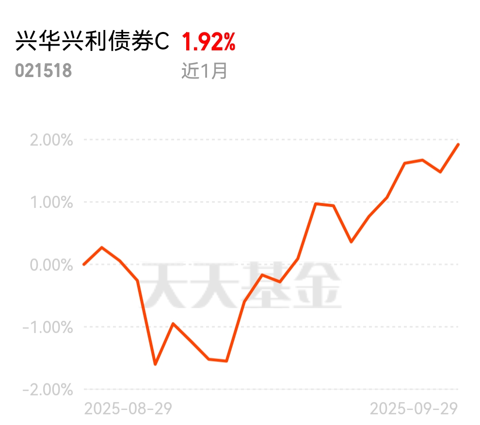 昨天兴利逆势收蛋43个!作为普通工薪族,我理财就图个安稳又有收益。兴利二级债基固收 + 类型,股债双轮驱动,近一个月在同类里排前 2%,不用费太多心思,还能有不错的收益,很适合我。$兴华兴利债券C$