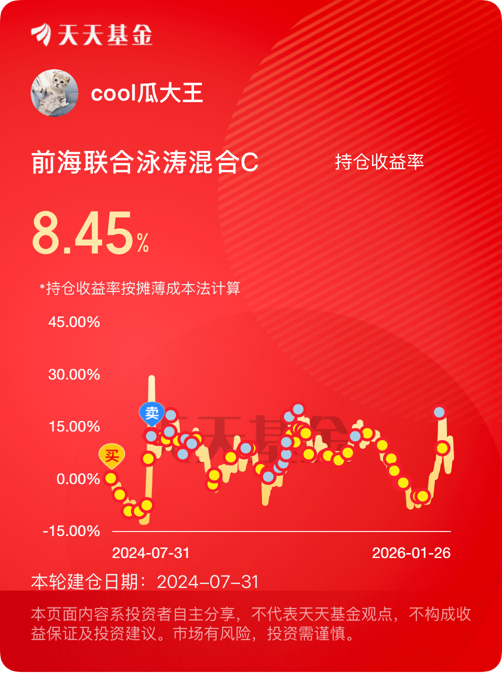 $前海联合泳涛混合C[007041]$ #晒收益# 你这反复调仓磨损都够大了,能不能不要风格漂移。